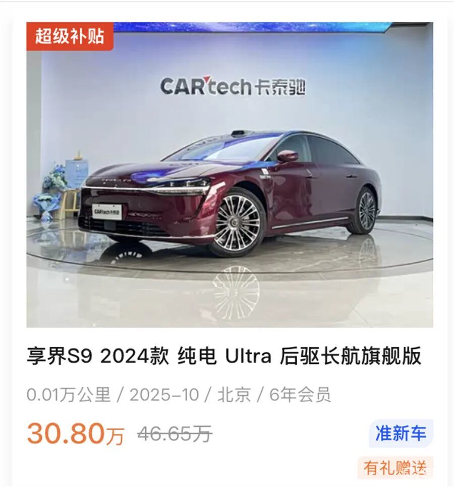 奔驰E、奥迪A6L在国内卖了多少年了?A6L 5年保值率能干到60%+,二手车行老板看到车架号都愿意多聊几句;而享界S9刚上市不到两年,品牌、渠道、残值全部是问号。
