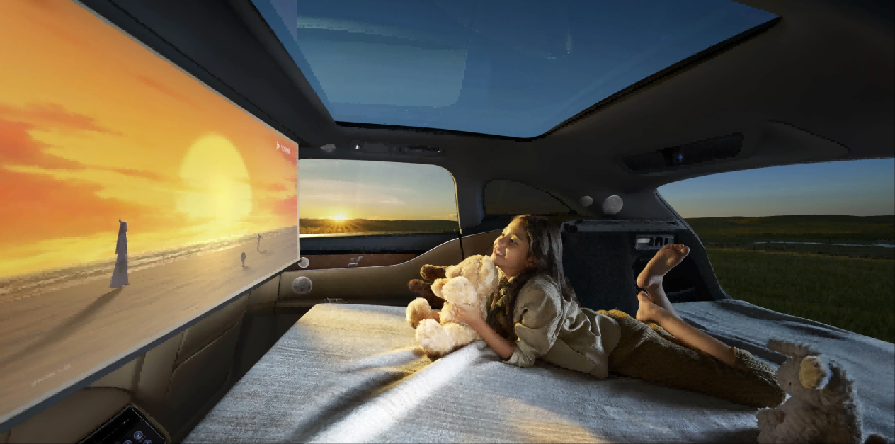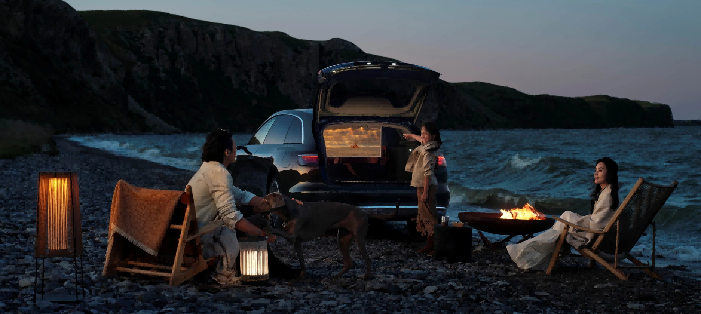 其次在体验方面,享界S9T除了实用的空间,以及看家的辅助驾驶、智能座舱之外,还有非常适合户外活动场景的仪式感配置,比如华为百万像素智慧投影大灯、鸿蒙旅拍、车内外都提供的外放电功能等等。