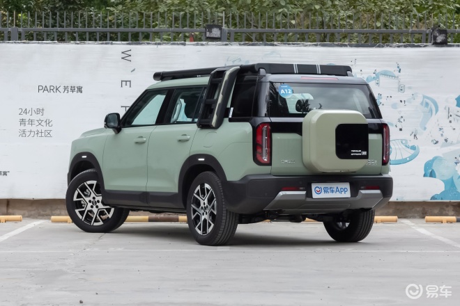 车身侧面来看,新车的“方盒子”造型更具硬派越野气质,隐藏式的A、B、D柱设计配合粗壮的C柱设计,营造出了悬浮式车顶的感受。新车腰线平直的横跨车身,前后翼子板拥有款出车体的设计,同时还辅以宽厚的黑色轮眉以及双色五辐式轮圈,整体造型的搭配进一步展现出硬派越野的属性。