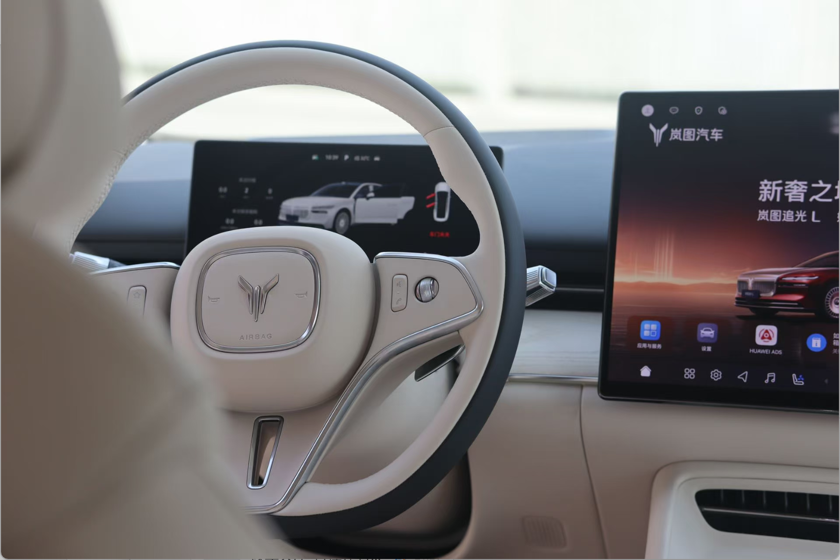 由于此次是静态体验,我们无法得知车辆的动态表现究竟如何。不过从机械配置来看,岚图追光L的动态表现还是非常值得期待的,比如新车配备了智能魔毯及空气悬架、前双叉臂+后五连悬架、全铝底盘悬架、后轮独立转向、智能四驱等,硬件竞争力非常强。