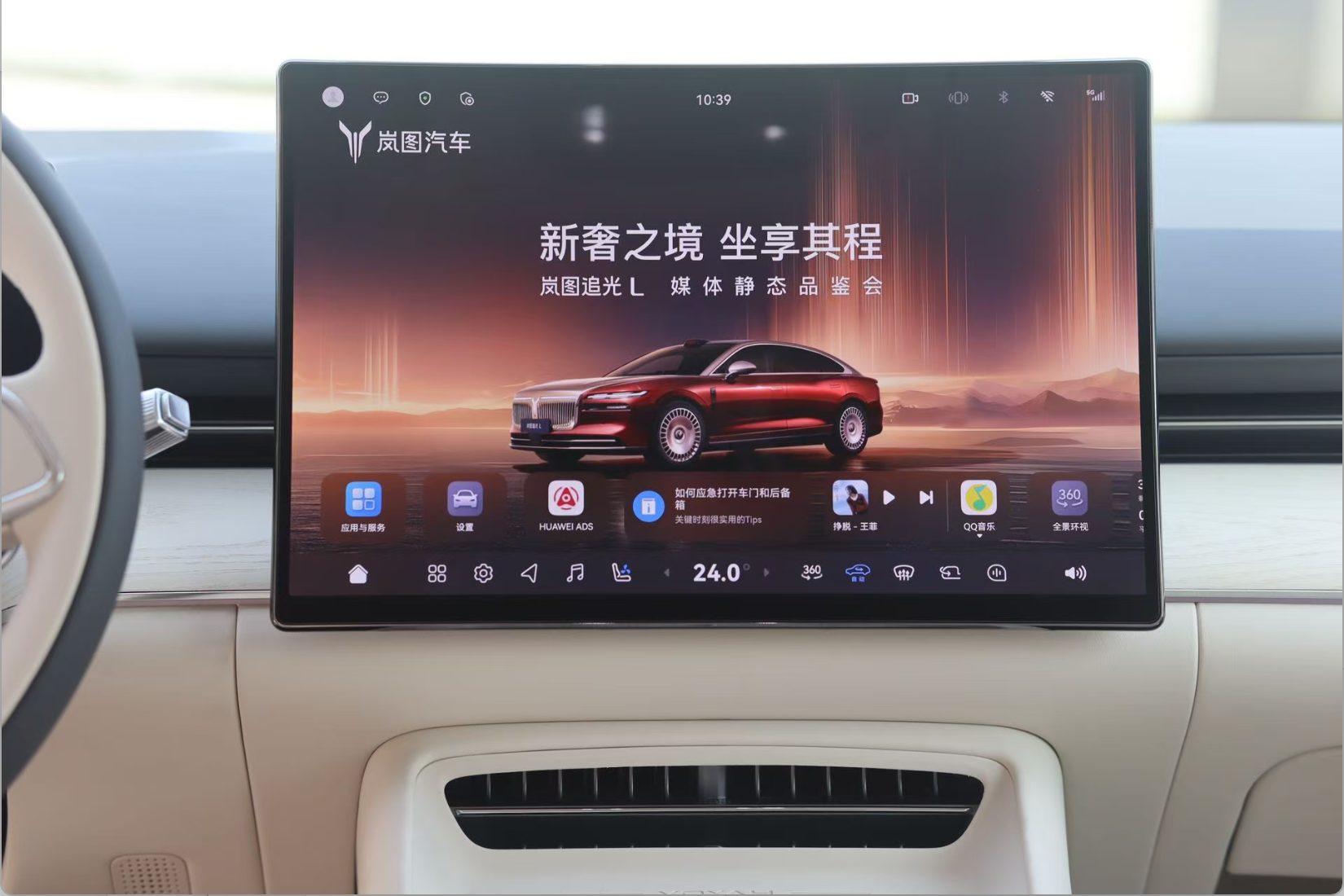 最重要的是智能配置,岚图追光L搭载了华为乾崑智能辅助驾驶和鸿蒙智能座舱最新技术。先说智能座舱,新车正式上市时会推送华为最新鸿蒙座舱5.1,体验车辆并不是最新版本,但其车机流程度、功能丰富度、UI设计已经非常优秀,使用体验处于同级第一梯队。16.1英寸大屏是超窄边框设计,视觉效果优秀;人机交互灵敏,识别准确率很高;UI自定义程度高,可以满足各种个性化需求;APP也很多,功能丰富性领先同级。