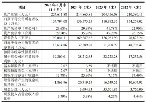 业绩方面,2022年至2024年及2025年上半年,天博智能营业收入分别为9.68亿元、12.70亿元、16.93亿元和9.20亿元;归属于母公司股东的净利润4.87亿元、1.12亿元、3.23亿元及1.86亿元。