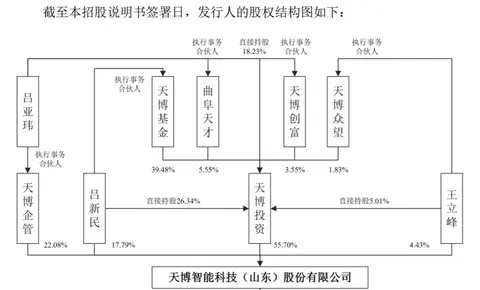 吕新民系天博基金的执行事务合伙人,吕亚玮系曲阜天才、天博创富的执行事务合伙人,两人合计控制天博投资93.16%的表决权,系天博投资的实际控制人,即通过天博投资控制公司55.70%的表决权;吕亚玮作为天博企管的执行事务合伙人控制公司22.08%的表决权。吕新民、吕亚玮合计控制公司95.57%的表决权。