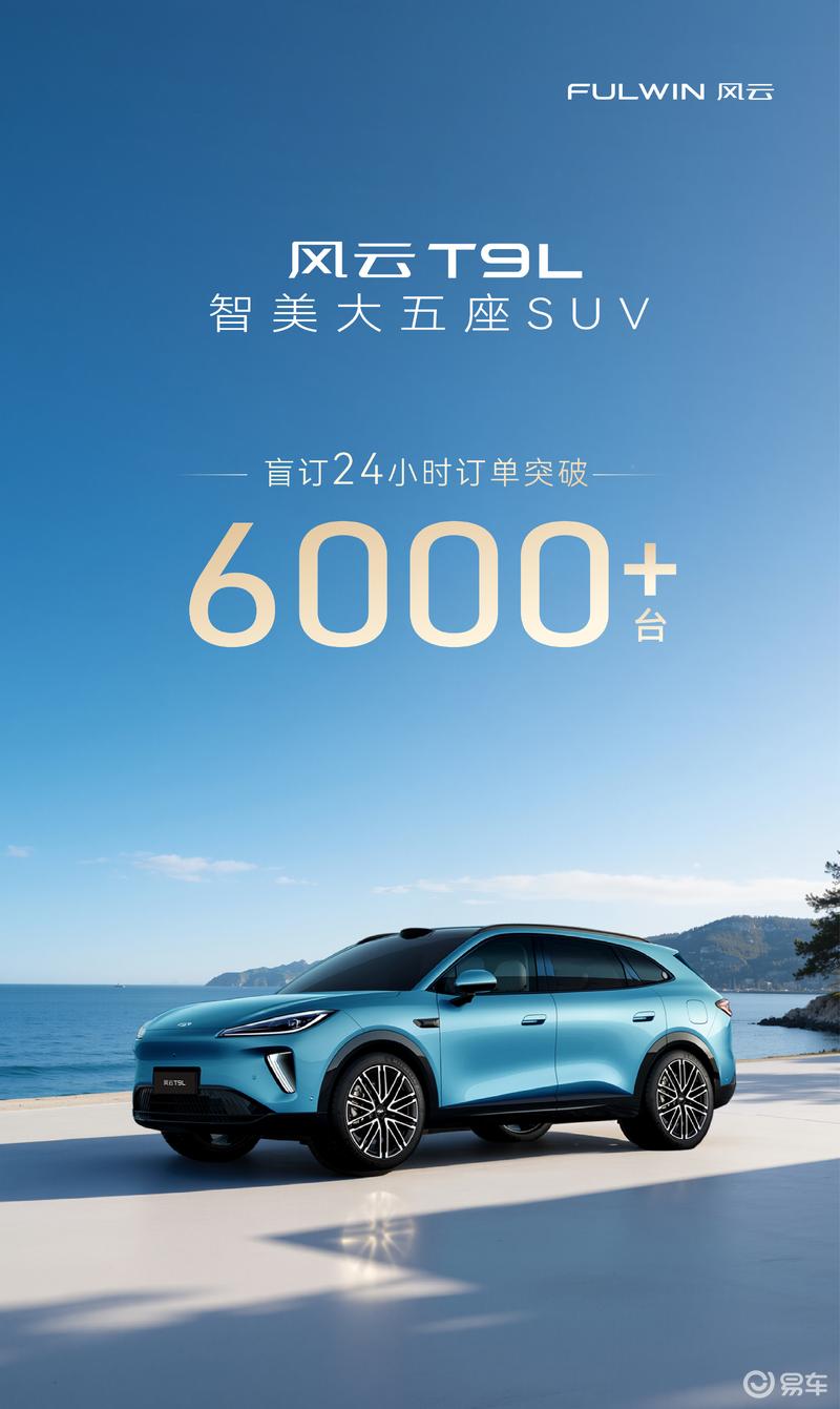 车讯 风云新能源日前宣布,奇瑞风云T9L开启盲订24小时订单突破6000+。风云T9L于1月17日开启盲订,999元下订可获赠四重礼遇,包含先享礼、野趣礼、铁粉礼和无忧礼。新车定位为大五座SUV,配备猎鹰700+智能辅助驾驶系统、地平线征程6P芯片等。据悉,风云T9L将在春节后正式上市。