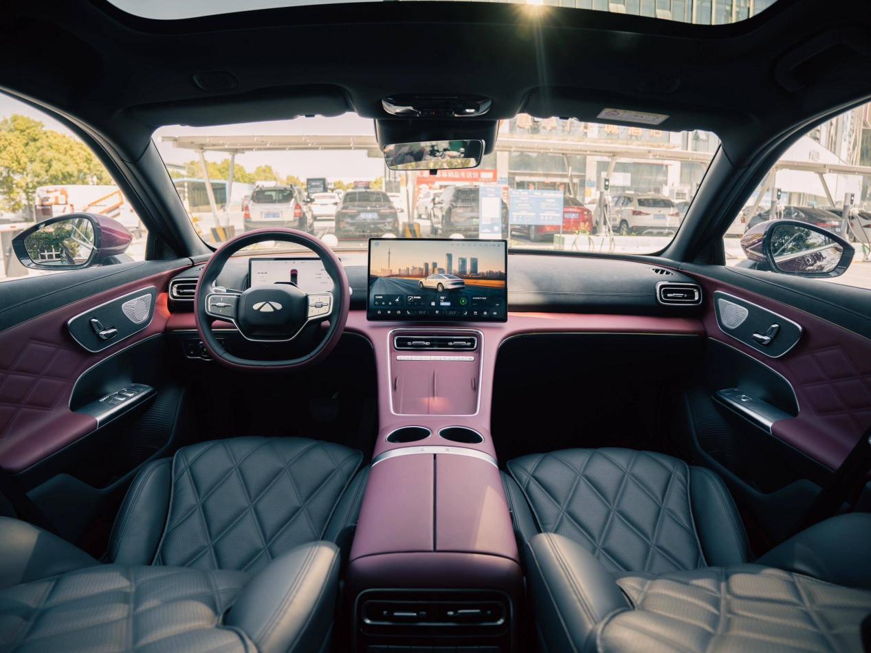 风云A9的座舱内采用了层次化的T型结构设计,台面采用了双色面料的布局,保持了相对简约的居家风格。中控区域配有悬浮式的液晶仪表和中控屏,并在扶手区域配有斜面的双分区手机无线充电板,后方则为杯架和储物盒,方便了主副驾乘员的使用。车内配备了AI灵犀智能座舱系统,并提供了驾驶、乘坐、娱乐、安全四种情景模式,在氛围灯和香氛系统的组合下提供了相对惬意的驾驶感受。