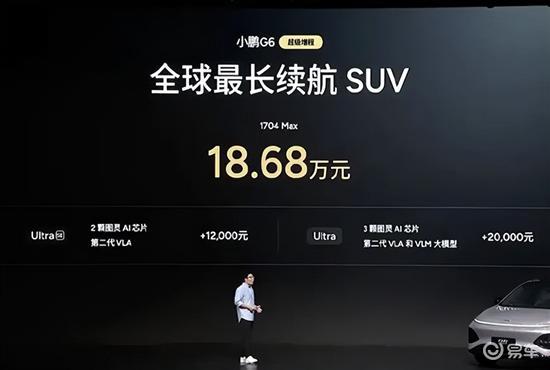 3月6日,小鹏G6超级增程正式上市,推出1款车型,官方指导价为18.68万元。此外,用户可选装两个智能升级包,加购12000元升级为Ultra SE版本、加购20000元升级为Ultra版本。同时,官方还推出至高价值33200元限时权益礼包。
