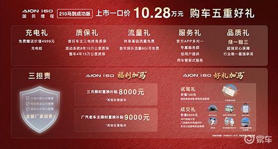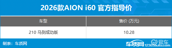 2026年3月2日,AION i60马到成功版正式上市,售价10.28万元。作为新增车型,其在保留配置与交互体验的同时,价格门槛进一步降低,性价比得到显著提升。官方不仅为新车提供充电礼、质保礼、流量礼、服务礼和品质礼的五重好礼,而且还推出了限时置换福利。3月入手AION i60其他在售版本可享8000元置换补贴,广汽老车主专享9000元补贴。