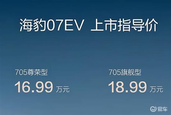 2026年3月5日,比亚迪官方正式宣布海豹07EV正式上市,新车共推出2款车型,官方指导价为16.99-18.99万元。车辆支持全新发布的闪充功能,并且限时赠送出众金融礼、出众智联礼、出众闪充礼等多项购车权益。