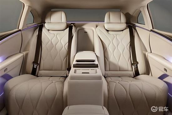 内饰方面,新车同样展现出鲜明的个性与豪华氛围。中控台采用对称式布局,大尺寸竖状中控屏搭配两侧内嵌式液晶仪表与副驾娱乐屏,科技感较为突出。新车提供4座与5座两种布局可选,座椅表面采用Nappa真皮包覆,前排座椅最多支持20向电动调节,并配备腰部支撑、通风、加热以及热石按摩等功能。4座版车型后排配备独立座椅,并在中央扶手处设置娱乐控制屏,可一键开启后排舒享模式,座椅支持大幅后仰,配合电动腿托、头枕与脚托,进一步提升乘坐舒适性。