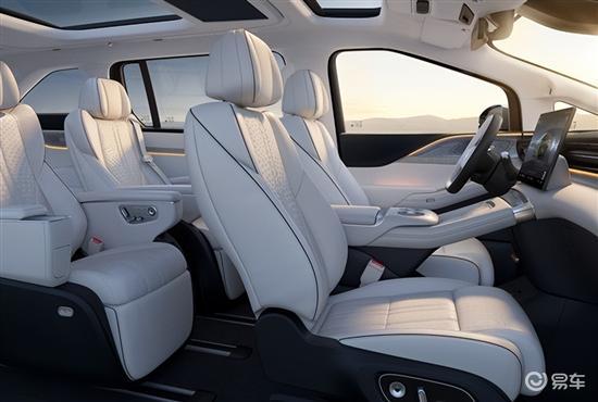 内饰方面,新车主打简约舒适,配备17.3英寸中控屏和10.25英寸仪表屏。车机内置高通骁龙8295P芯片和图灵AI芯片,支持多种互联方式、六区域语音唤醒识别等功能。同时,全系标配三排电动三折叠座椅,第三排支持180度躺平,实现全员舒适满分表现。