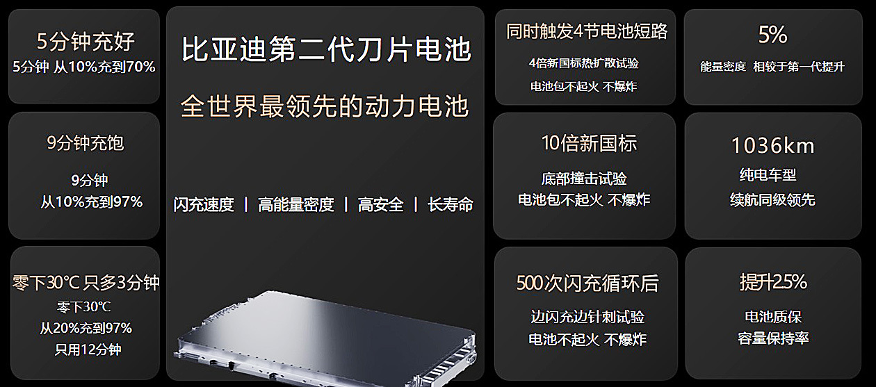 当然,技术的迭代从来不是单一维度的突破。第二代刀片电池在能量密度上同样迈出了一大步。通过采用磷酸锰铁锂复合正极与硅碳负极新材料,其系统能量密度相比第一代提升了约5%至36%,这让搭载该电池的车型轻松拥有了突破千公里续航的底气。而在安全这项不可妥协的底线上,它延续了第一代刀片电池针刺不起火的高安全基因,更令人惊叹的是,即便在500次闪充循环后,它依然能通过“边闪充边针刺”的极限测试,安全标准远超国标。电池容量保持率从75%提升至77.5%,电芯终身保修,则是比亚迪对自家技术信心的最好注脚。