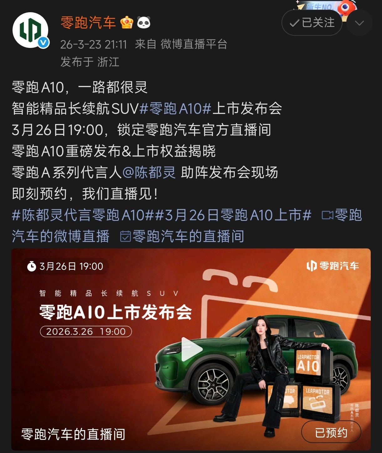 车身尺寸方面,零跑A10长宽高分别为4270mm、1810mm、1635mm,轴距2605mm。外观延续“科技自然美学2.0”设计,配备“嘻嘻灯”前脸与“哈哈尾灯”,提供6款全球自然色,兼顾美观与实用性。