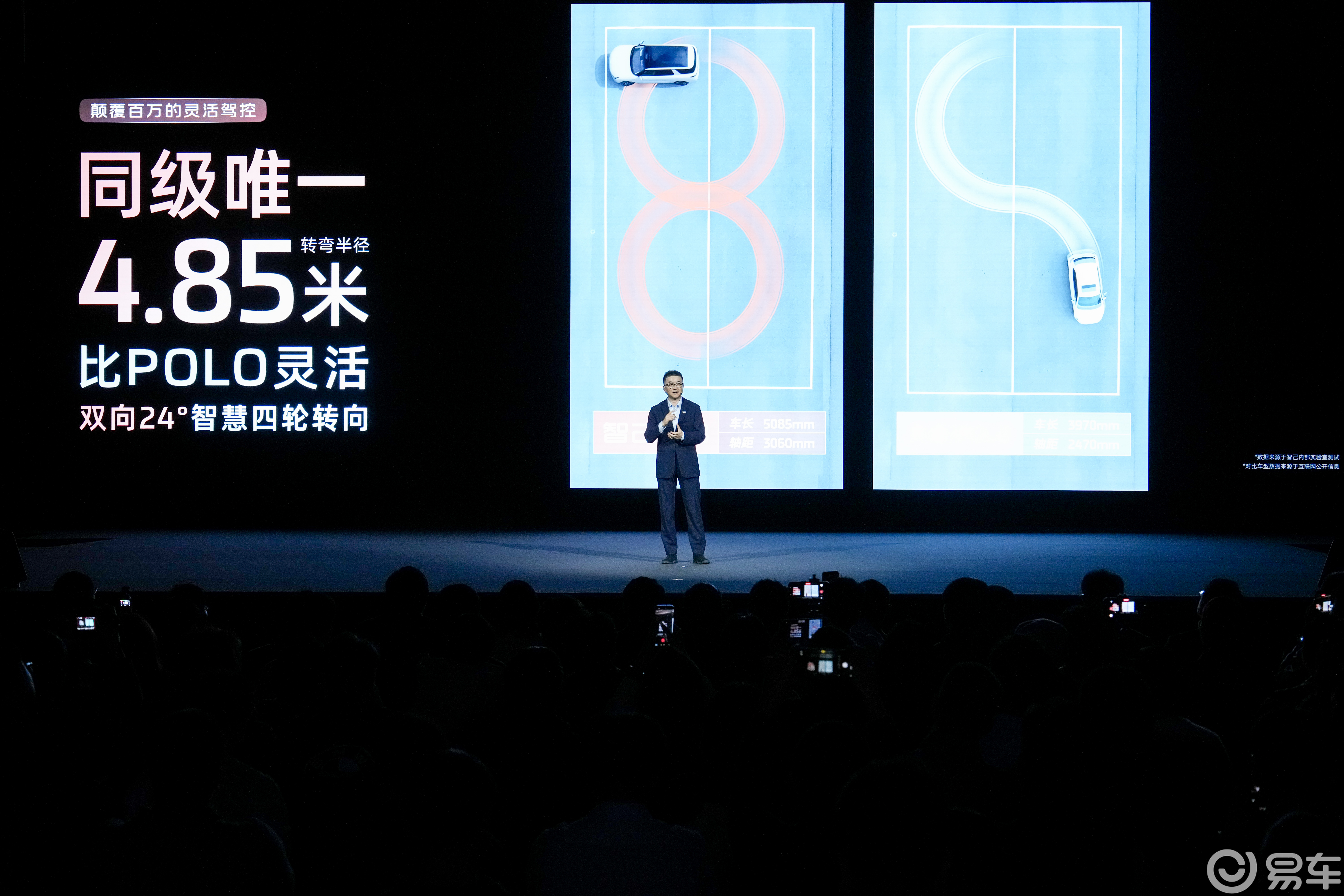 更关键的突破,是智己 LS8 同级首发的全线控四轮转向系统。这套系统支持后轮双向 24° 转向角度,让这台大车的转弯半径做到了 4.85 米——比绝大多数 A0 级小车还要灵活。狭窄地库一把入库、城市路口一把掉头,彻底终结了大型 SUV “笨重难开”的痛点。