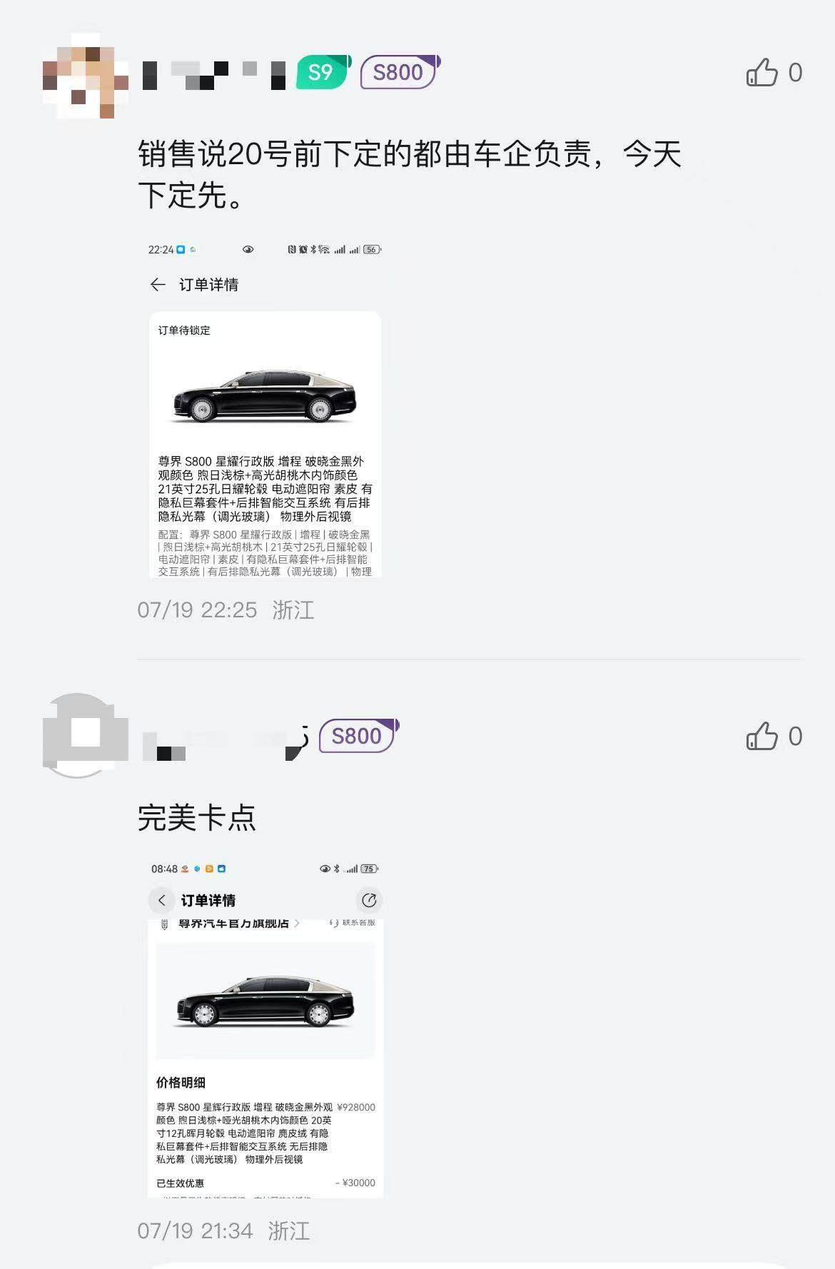 此外,记者在鸿蒙智行App上发现,多位准车主/车主称已收到尊界S800销售的通知,7月20日前锁单且价格超过101.7万元的尊界S800用户,无需缴纳10%的豪车消费税。官方信息显示,尊界S800的价格区间为70.80万~101.80万元。其中,2025款增程星耀行政版4座车型的售价为101.80万元,在此次超豪华车消费税调整范围内。