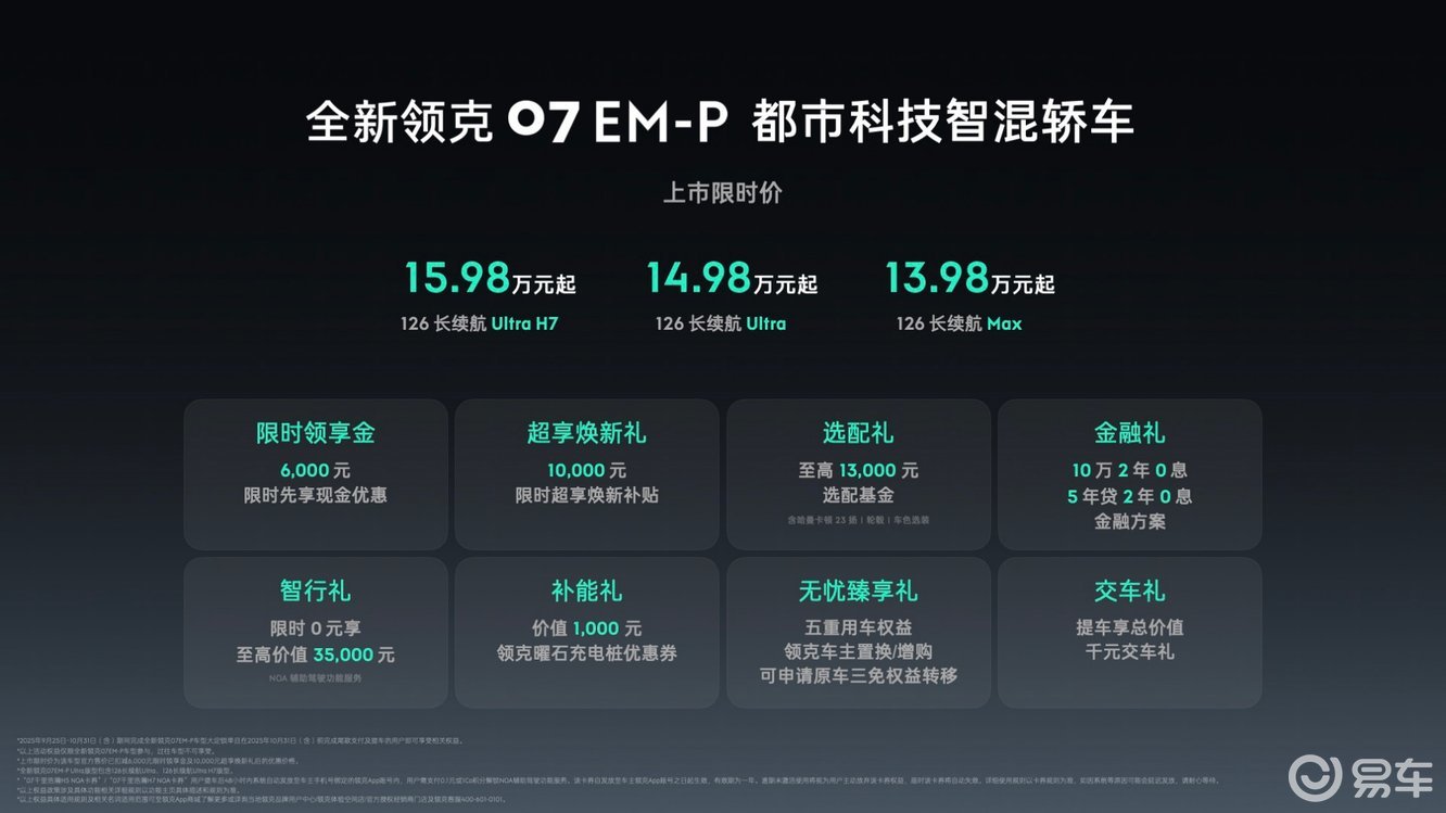 此次上市的全新领克07 EM-P,共推出126长续航Max、126长续航Ultra、126长续航Ultra H7三个版本。从设计到配置,每一处都瞄准年轻消费者的核心痛点——既要智能省心,又要舒适省油,还要兼顾安全与颜值。