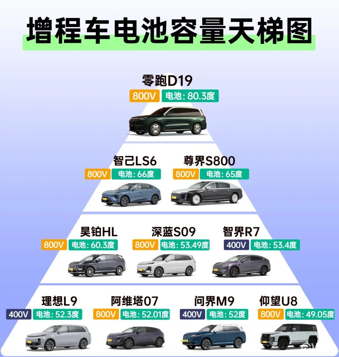 细看近日流传的一张《增程车电池容量图》,答案似乎已显而易见:面对市场的激烈“内卷”,各大车企正在增程产品的电池容量方面不断“加码”。要知道,新科“冠军”零跑D19的电池容量和CLTC纯电续航里程甚至已经超过了目前市面上的绝大多数纯电动力车型。