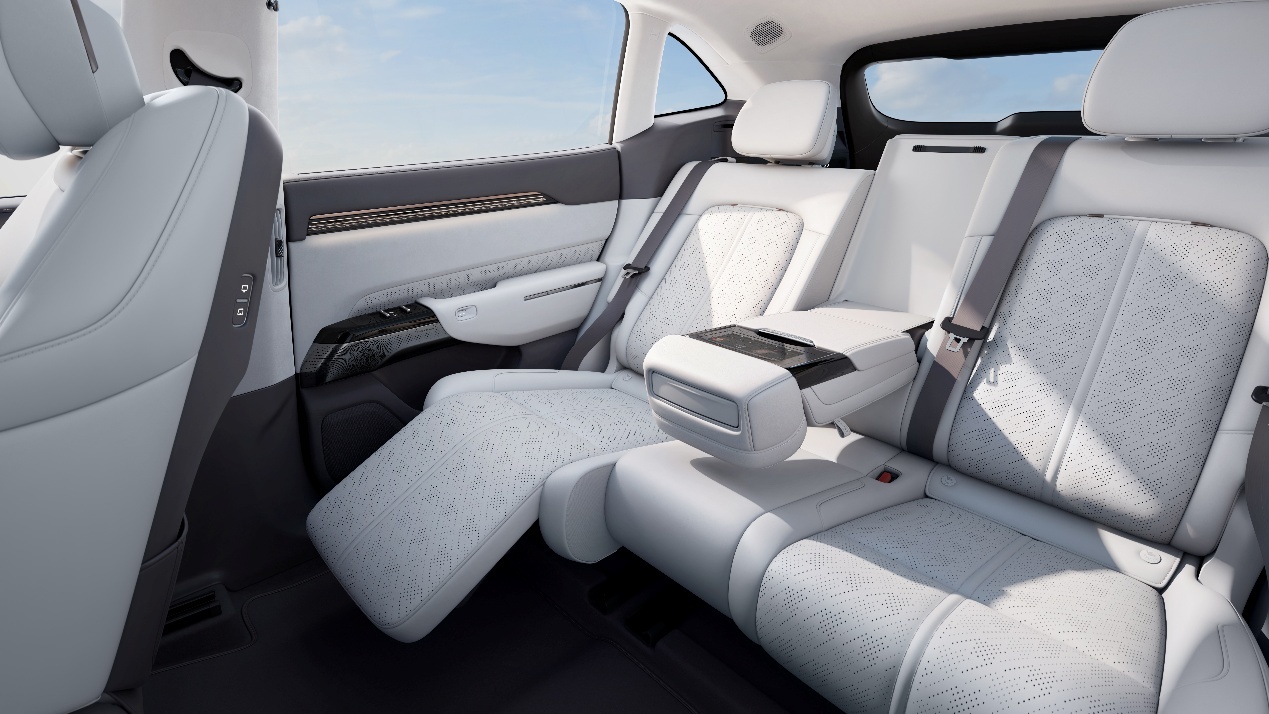 全车座椅标配加热功能,前排支持通风、按摩、记忆、电动调节,副驾座椅靠背配有13英寸2K OLED后排控制屏、电动小桌板。后排新增355mm电动腿托,靠背最大调节角度达134°。后排座椅拥有145mm滑动行程,后备箱常规容积达905L,后排放倒后可拓展至1978L。
